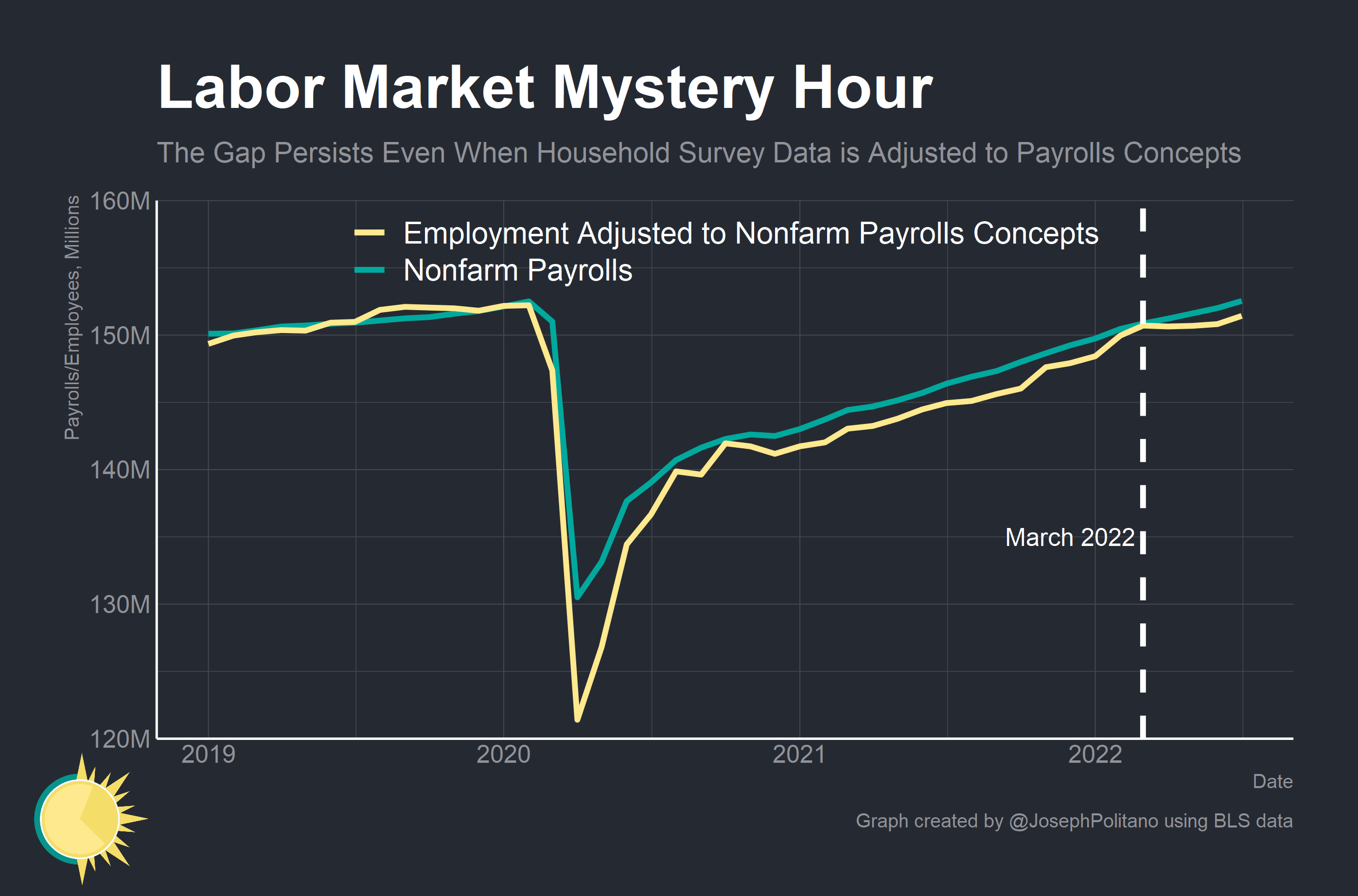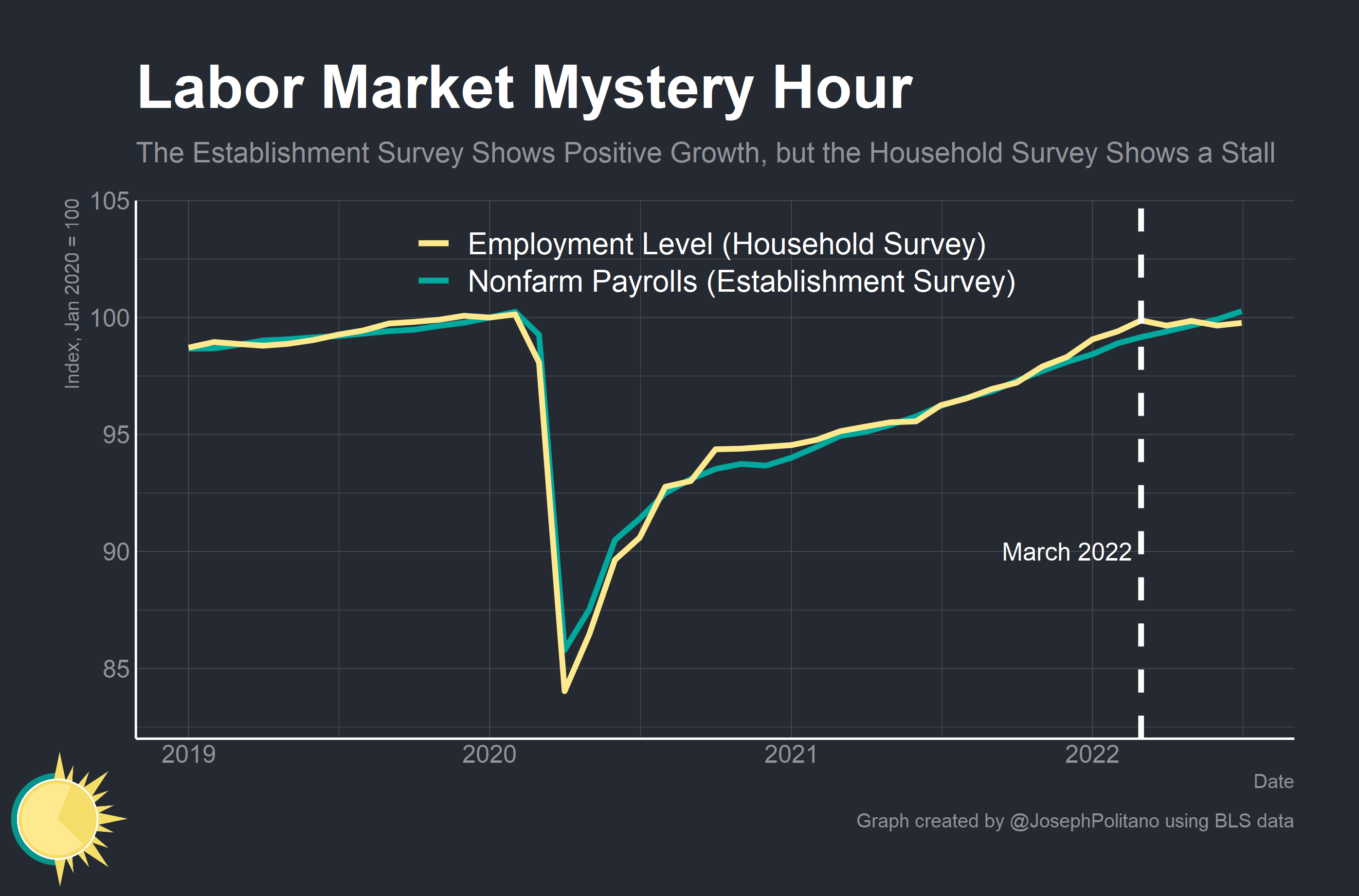 So we’re still left with a situation where the two surveys fundamentally disagree about the path of the labor market over the last four months.