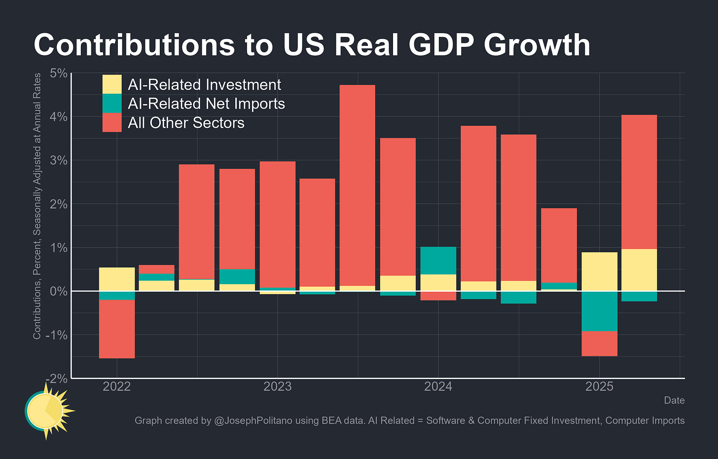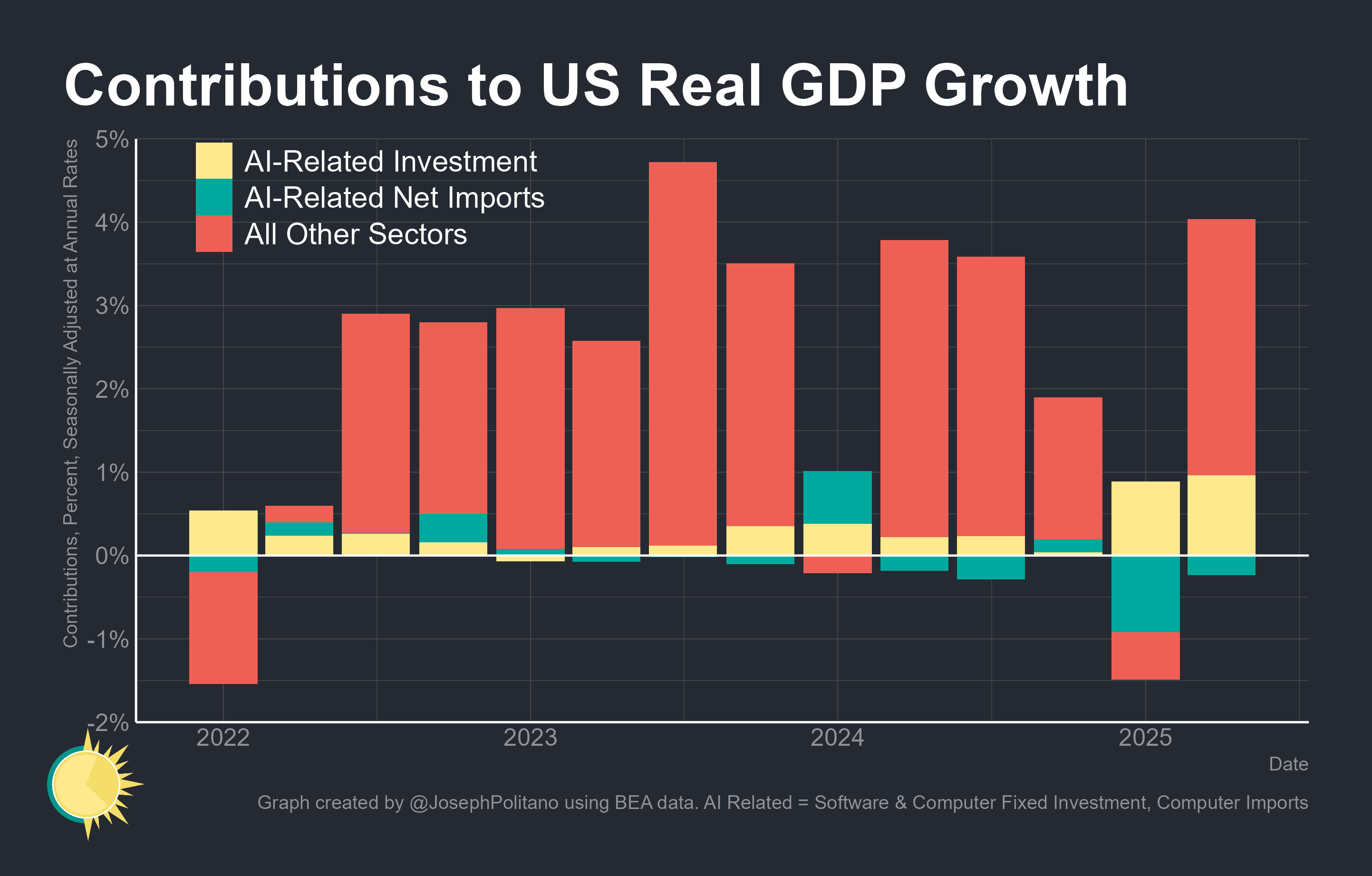 Meanwhile, US economic growth is increasingly driven by today’s AI buildout. In Q2, computer & software investment officially contributed roughly 0.71% to the 3.8% annualized pace of growth, which is almost certainly an underestimate given how official data struggles to capture investment in electronic parts. Large parts of the US economy are now totally dependent on this tariff exception for computer imports.